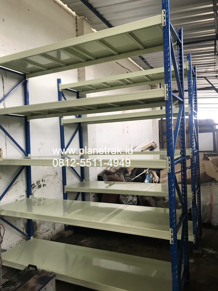 Rak Gudang yang cocok untuk penyimpanan barang-barang berat digudang besar. dibuat dari bahan besi baja yang kuat sehingga mampu memuat beban barang 500kg/level, memiliki ukuran 2000 mm sampai 4000 mm.